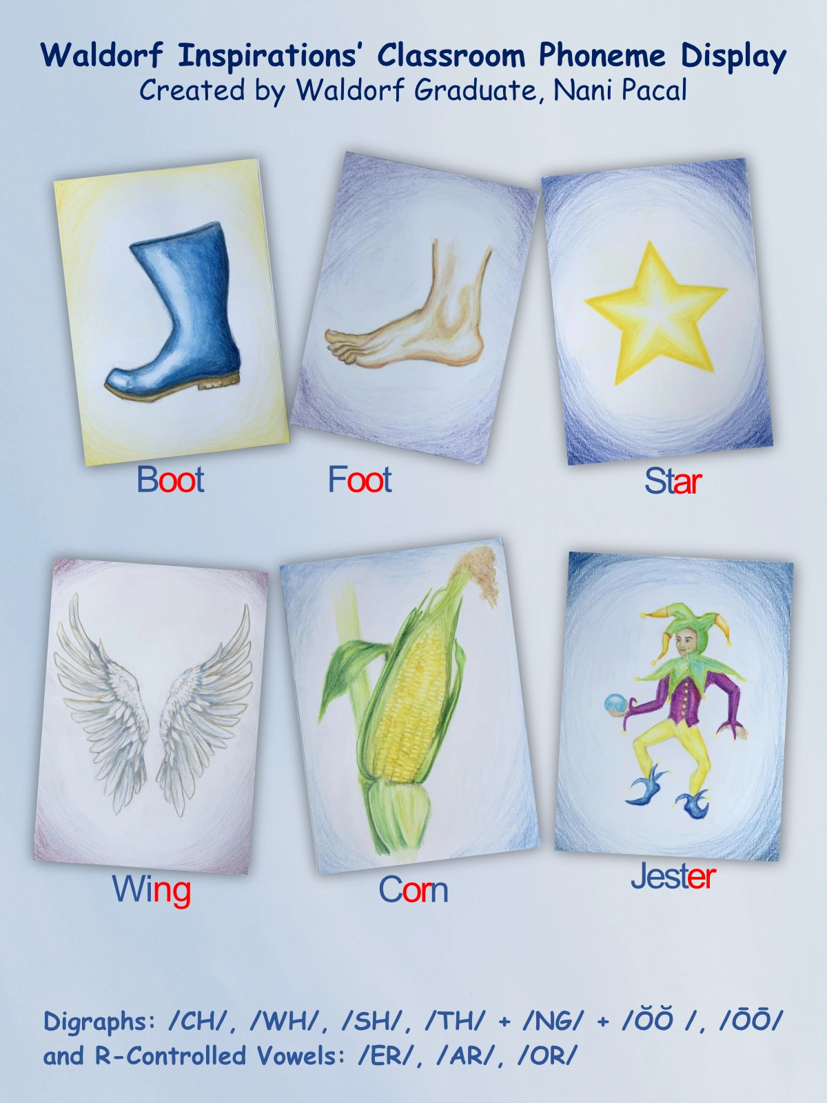 Ten beautifully illustrated anchor pictures for introducing a variety of phonemes in English. Designed to complement the Alphabet Display.